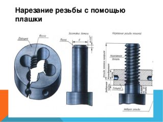 - Une matrice ou un poinçon - un dispositif sous la forme d'un écrou en métal durci, a des arêtes de coupe affûtées (couteaux). Ils sont de forme ronde, carrée, hexagonale. Types de matrices : pleines, coulissantes, fendues. Des trous sont prévus pour l'élimination des copeaux.