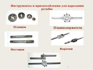 Les outils utilisés doivent être de haute qualité, le métal des couteaux est tranchant et durable. Lorsque vous travaillez avec des matrices et des tarauds, un étau est nécessaire.