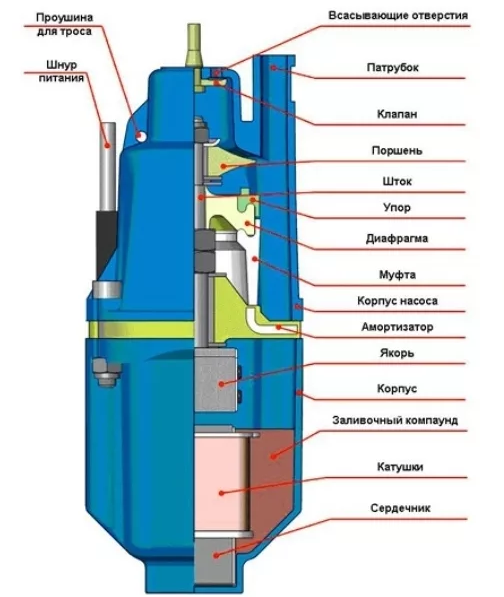 Les pompes vibrantes sont moins puissantes, de plus, limitées par la distance à la surface de l'eau. Ils conviennent mieux aux puits qu'aux puits, car l'excitation créée dans l'eau par les vibrations n'affecte pas significativement le taux d'envasement de la source. Parmi les inconvénients, il y a une courte durée de vie. L'avantage est qu'ils n'affectent pas le processus de destruction des parois du puits, car ils sont situés loin d'eux.