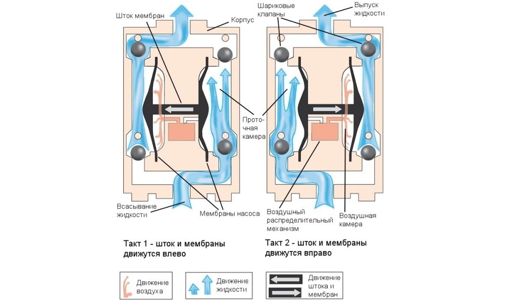 - Soupape d'admission. Il change de position en fonction de la pression dans la chambre de travail. Quand il tombe, la valve s'ouvre. Lorsqu'il est augmenté, il se ferme. Au sommet de la pompe se trouve la même vanne (sortie). Cela fonctionne dans le sens inverse. Lorsque la pression monte, il s'ouvre. Quand il descend, il se ferme.