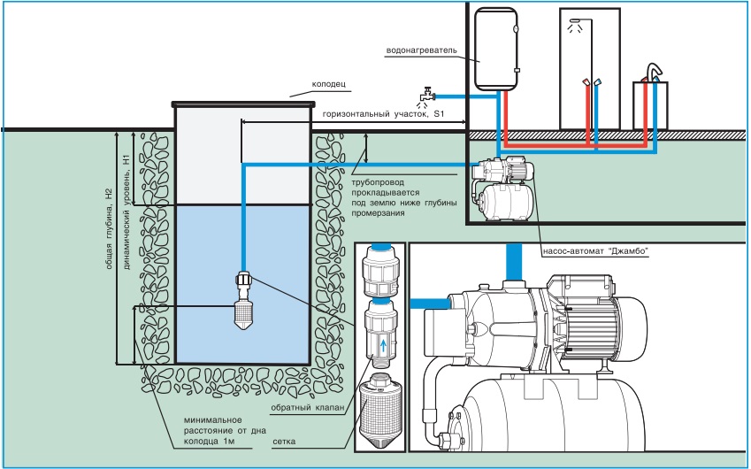 - Si la pompe est utilisée en hiver, vous devez disposer un caisson isolé spécial en dessous. Sinon, le système va geler. Vous devez également isoler les conduites d'eau de la source à la pompe et à la maison. Vous pouvez installer une station de pompage au sous-sol du chalet, à condition qu'elle soit chauffée.