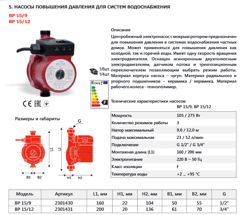 Un large assortiment de PNS ménagers est présenté par des fabricants nationaux et étrangers. La société danoise Grundfos et le calibre russe ont une bonne réputation.