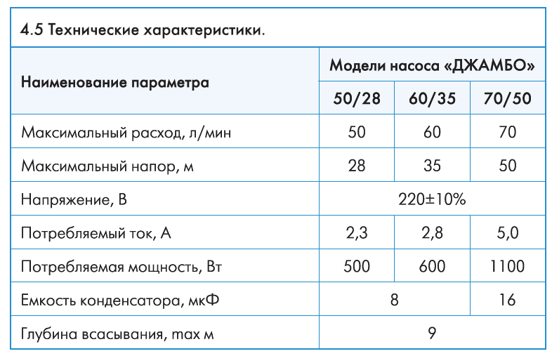 Au total, il existe plusieurs modèles de stations de pompage Jileks Jumbo sur le marché. Avec les mêmes caractéristiques techniques, les carters peuvent être réalisés dans différents matériaux (acier, fonte, polymère).