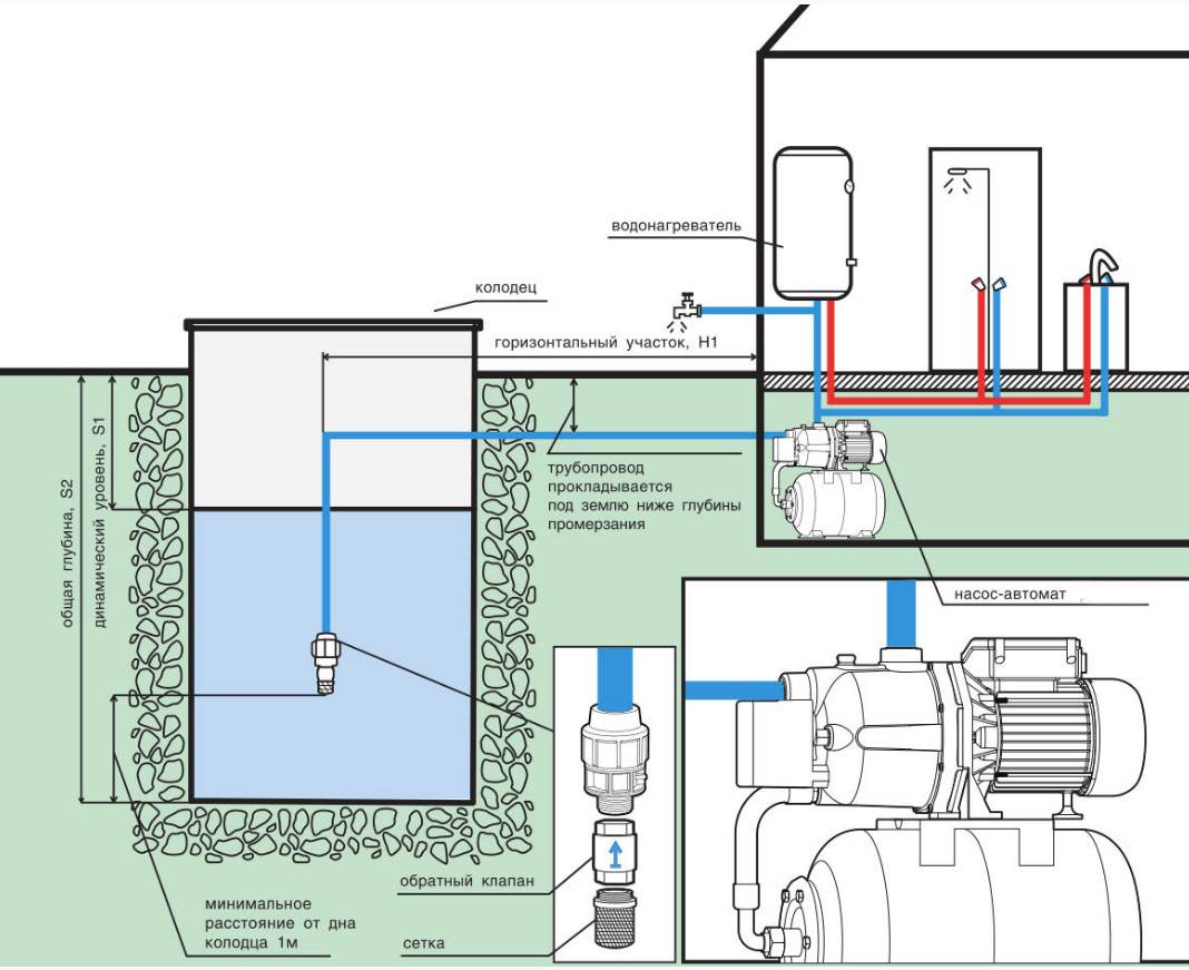 - La profondeur limitée du puits - la disposition des stations de pompage d'approvisionnement en eau ne permet pas d'atteindre l'eau à plus de 9 mètres de profondeur sans éjecteur.