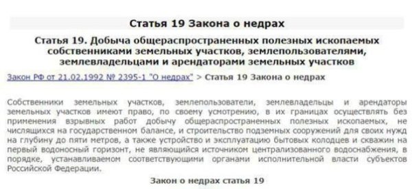 Tout propriétaire qui décide de réaliser un système d'approvisionnement en eau autonome sur un terrain personnel doit être conscient que toute utilisation du sous-sol du terrain est taxée ou soumise à accises par les autorités de l'État. Les puits artésiens font également partie des richesses, si le puits est construit en sable ou abyssin, vous n'avez pas besoin de payer d'impôt.