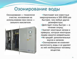 - En plus de l'effet bactéricide prononcé, après avoir utilisé la méthode, l'eau est purifiée du fer, du manganèse et du sulfure d'hydrogène.