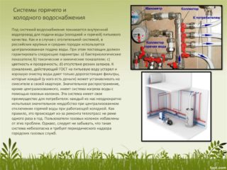 Pour fournir de l'eau chaude à une maison privée, des installations de chauffage de l'eau sont utilisées. Ils peuvent être alimentés au gaz ou à l'électricité. Les plus couramment utilisés sont les chauffe-eau à accumulation et à circulation. Dans le premier cas, l'appareil chauffe l'eau comme une bouilloire géante. Dans le second, le chauffage est effectué au moment où le robinet est ouvert.
