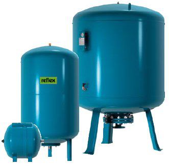 Les vases d'expansion de stockage sont choisis pour les grands systèmes d'approvisionnement en eau. Le niveau d'eau dans le réservoir est surveillé par un capteur, arrêtant et démarrant la pompe.