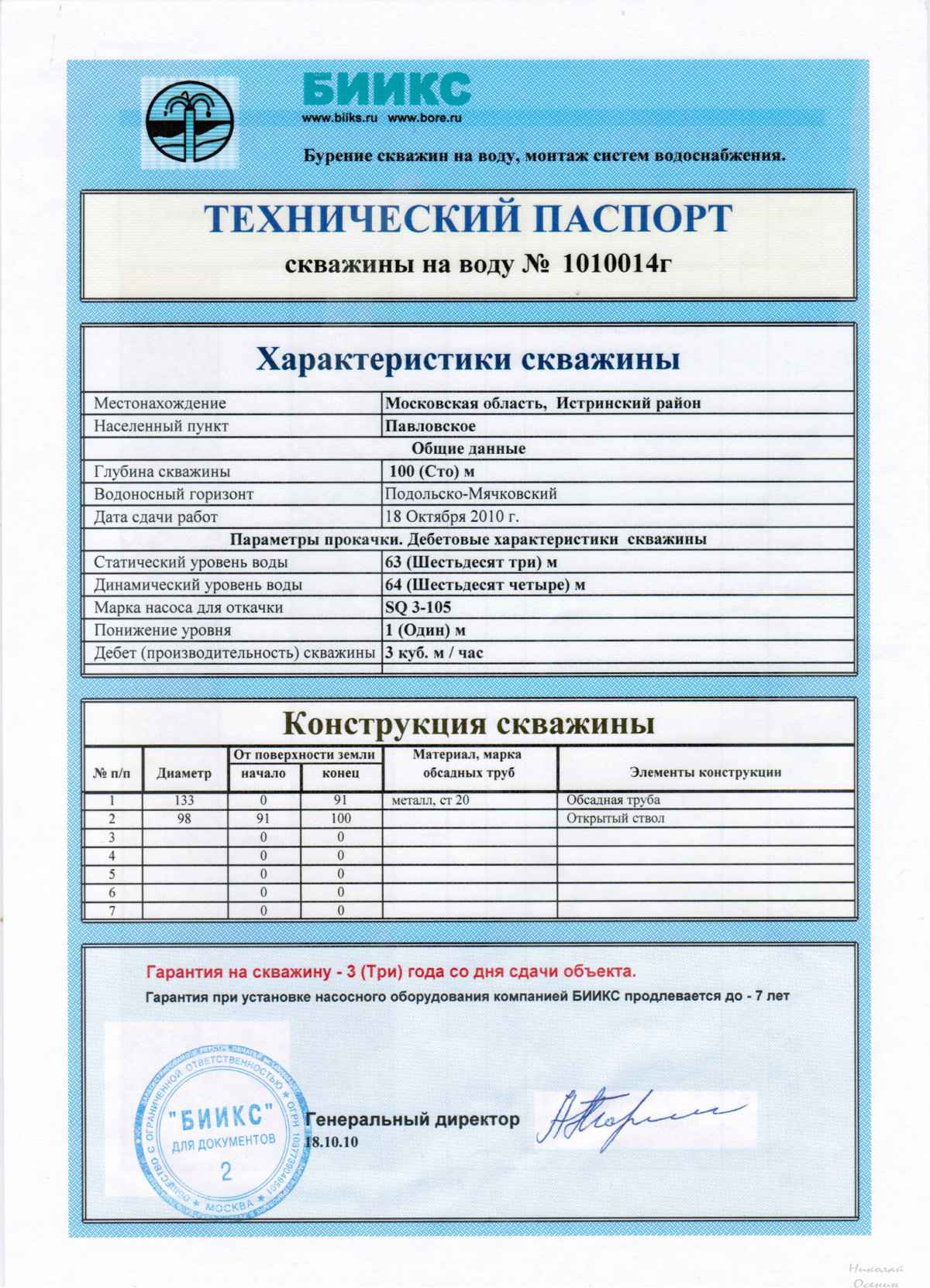 Un passeport de puits est un document officiel qui indique les caractéristiques et les caractéristiques de la source. Lors du forage d'un puits à partir d'une couche artésienne, selon la législation, une telle documentation est requise. Si la profondeur de la source est faible, il n'est pas nécessaire de rédiger des documents, mais en cas de dysfonctionnements techniques, cela vous sera utile.