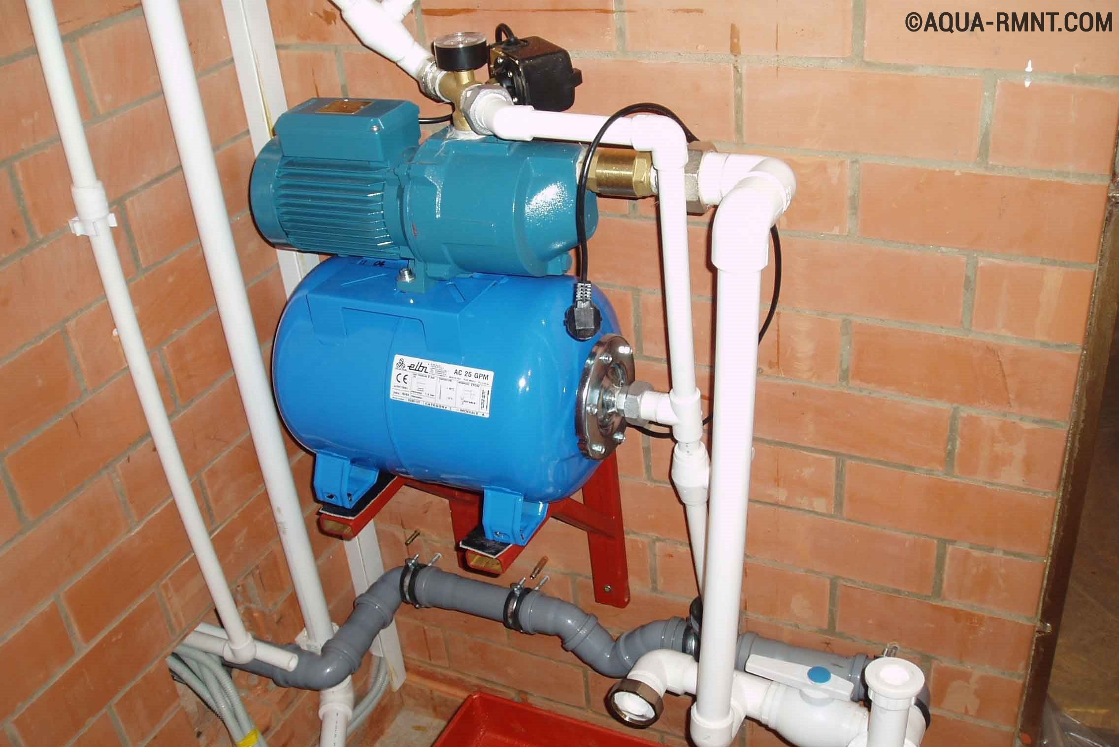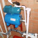 - Une pompe est connectée au tuyau de sortie de l'accumulateur et la deuxième section du tuyau y est déjà amenée, par laquelle l'eau pénètre dans la maison.