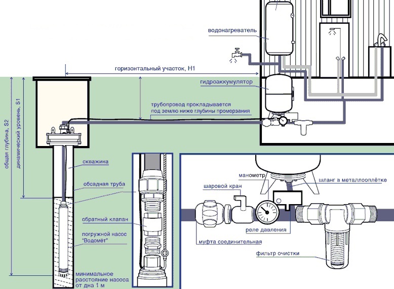 Pour assurer une pression stable dans le système d'alimentation en eau, une station de pompage est utilisée. Ses principales unités de travail sont une unité de pompage, un accumulateur hydraulique, un relais et un équipement automatique de contrôle des équipements. Le raccordement de pompes de forage de vos propres mains peut être effectué selon un schéma à un ou deux tuyaux. L'option est choisie en fonction de la profondeur de la source.
