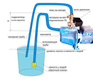 Avant de démarrer le système et de mettre en place l'automatisation, de l'eau est versée dans l'ouverture technique du réservoir à membrane et de la pompe. Leur inclusion à sec (ralenti) est interdite.
