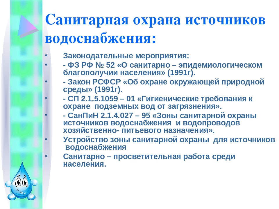 - Dans la première zone sanitaire, il est interdit aux personnes de construire et d'habiter, de vider les égouts, de paître et d'abreuver le bétail, la baignade sont interdites. Vous ne pouvez pas pêcher, laver les vêtements, etc. Ces zones sont gardées.