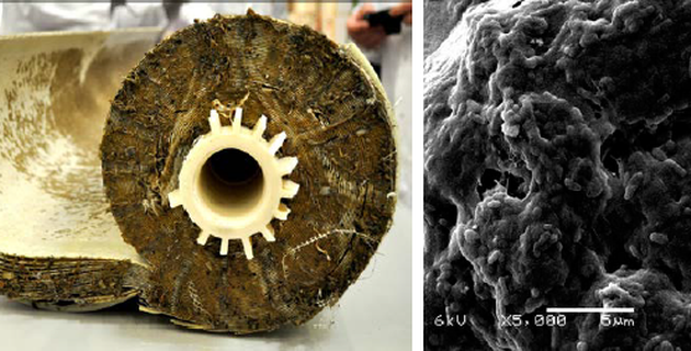 - Débris biologiques.La plaque noire est causée par l'accumulation de moisissure, de mildiou ou de boue. Les contaminants biologiques s'accumulent souvent sous forme de mucus et de films sur la membrane ou le boîtier du système de filtration. Les raids de ce genre sont dangereux car, en détruisant les éléments, ils peuvent pénétrer dans l'eau potable et provoquer diverses maladies.
