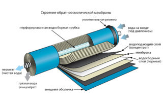 La membrane du filtre à osmose inverse est située dans le corps du purificateur. La capacité quantitative peut aller de une à sept pièces. Ils se distinguent structurellement :