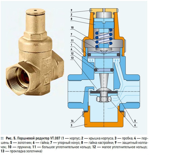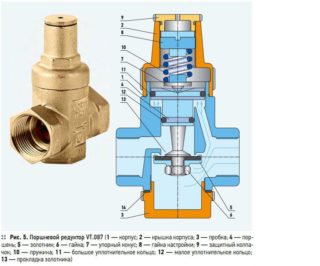 Les coups de bélier provoquent une augmentation de la pression du collecteur, car l'eau n'est pas comprimée. Lorsqu'il est exposé à la membrane, le piston se déplace dans l'espace fermé du corps, de sorte que l'appareil réagit instantanément aux moindres changements de paramètres et évite les dommages causés par les coups de bélier en limitant l'alimentation en eau. Ainsi, le détendeur protège le réseau d'alimentation en eau et les appareils qui y sont installés des changements rapides du régime hydraulique, qui ont un effet néfaste sur tous les appareils de plomberie, provoquant leur panne.