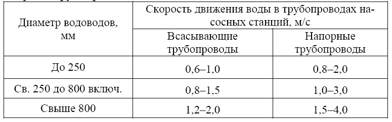 Selon l'un des tableaux, la vitesse de déplacement de l'eau est sélectionnée. S'il s'agit d'un système d'alimentation en eau d'incendie, ce paramètre doit être inférieur à 3 m / s. Assez grande valeur, mais pour un système d'approvisionnement en eau de ce type, la valeur est moyenne, parfois plus.