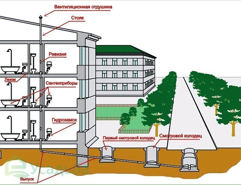 L'installation du réseau d'égout commence par le drainage des eaux usées de l'intérieur d'un immeuble d'habitation ou de tout autre bâtiment. A la sortie des ouvrages, les drains pénètrent dans les puits, les puits, qui servent de lien intermédiaire entre les conduites de soufflante et les autres éléments de la canalisation.