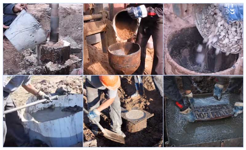 Avec l'élimination complète de la source, le coulis de ciment est versé dans la mine - cela réduit la probabilité de mélange des aquifères adjacents et renforce également le puits.