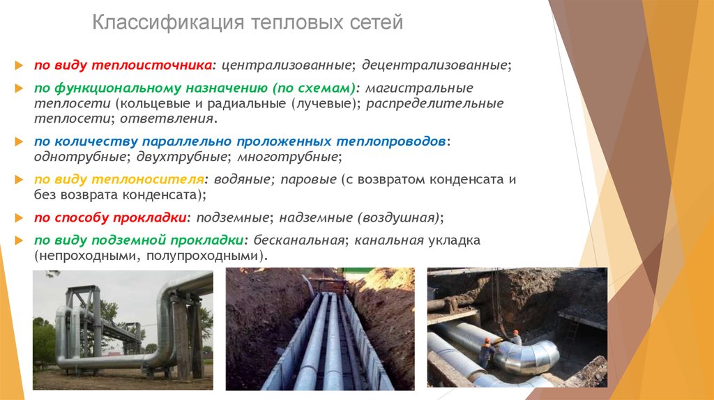 La division des réseaux de chaleur s'effectue selon les facteurs suivants: