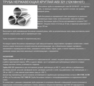 Dans les industries pétrochimiques et métallurgiques, les tuyaux sont principalement utilisés en acier AISI 904L. Dans la production d'équipements résistant à la chaleur, on utilise des produits en acier résistant aux températures élevées. Parmi elles figurent les marques 310S, S31000, S31008, S31009.
