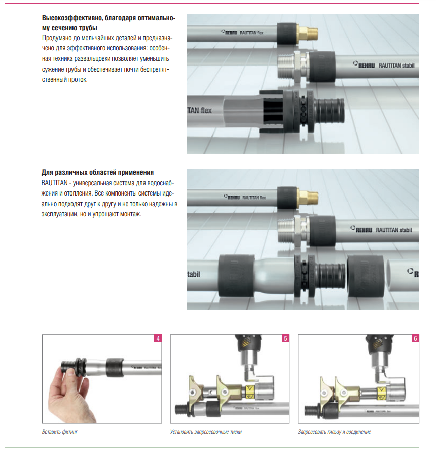 Mikhaïl, 35 ans : Récemment, le beau-père s'est fait tirer une nouvelle plomberie dans la maison. Nous avons décidé de prendre des tuyaux Rehau en polyéthylène réticulé. Mon beau-père fait de la plomberie depuis 15 ans, j'aimais travailler la matière. Les tuyaux sont légers, ils sont montés à l'aide d'un outil spécial et d'un manchon. En conséquence, nous obtenons un système avec une probabilité d'erreurs de connexion égale à 0. Idéal, beau, fiable et en allemand.