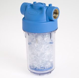 - Filtre à cartouche. Se compose d'un flacon transparent et d'une cartouche de résine échangeuse d'ions remplaçable. Il est utilisé pendant la période d'échange de 4000 litres (six mois de travail).