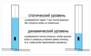 Le niveau dynamique dépend de la caractéristique statique, à l'aide de laquelle la profondeur d'immersion de la pompe de forage est déterminée. Elle est mesurée avec l'équipement sous pression allumé de la surface de la terre à la surface de l'eau. Pour éviter que l'unité de pompage ne fonctionne à sec, elle doit être installée en dessous d'une certaine marque avec une petite marge.