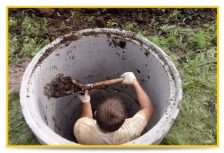 - Creusez un trou d'un diamètre légèrement supérieur aux anneaux sélectionnés sur une profondeur d'environ un demi-mètre.
