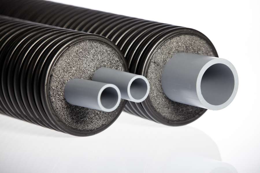 Cette méthode d'isolation est considérée comme l'une des plus coûteuses. Le fabricant propose les tubes prêts à l'emploi principaux équipés d'un matériau d'isolation thermique. Structurellement, il s'agit d'un tuyau principal en plastique/polyéthylène, enveloppé d'isolant et placé dans un autre (de plus grand diamètre). Il ne reste plus qu'à les poser correctement dans la tranchée.