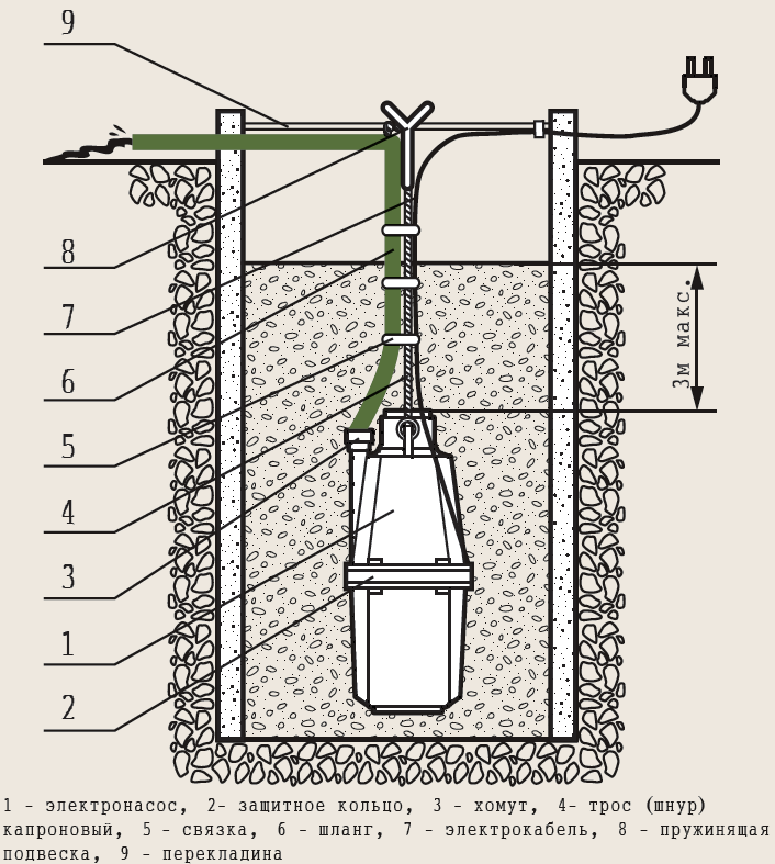 - si l'unité n'est pas utilisée en hiver, elle est retirée du puits, séchée, lubrifiée avec des attaches et stockée dans un endroit sec.