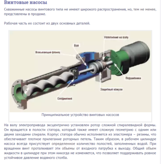 Les pompes à vis n'ont pas d'analogues lors du pompage d'eau potable avec une forte concentration d'impuretés nocives à partir d'un puits.