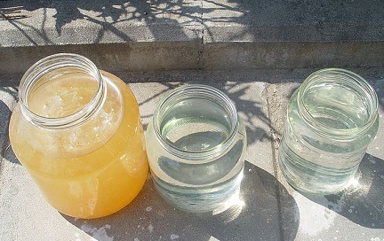 - Mélange d'argile ou de sable. Si le filtre inférieur est défectueux ou si le boîtier est dépressurisé, une fine fraction de sol suinte dedans. De telles impuretés sous forme d'argile ou de sable changent la couleur du liquide en jaune. L'intensité de l'ombre et la turbidité dépendent de la concentration de la boue dans l'eau.