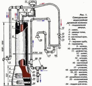 Le bois de chauffage, le charbon ou leurs déchets sont utilisés comme combustible pour l'appareil, ce qui rend le fonctionnement d'une telle colonne autonome de l'alimentation en gaz et en électricité, augmentant considérablement l'efficacité du processus de chauffage.