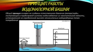 À l'intérieur de la haute structure, il y a un pipeline, chacun avec un mécanisme de fonctionnement séparé. Il existe plusieurs types de châteaux d'eau, qui diffèrent par leur apparence et leurs caractéristiques de travail.