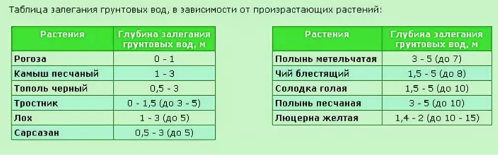 Si des plantes avec un système racinaire puissant sont situées sur le site, cela signifie que le niveau des ressources en eau est situé en profondeur. Si les cultures végétales ont de petites racines, les couches souterraines ne sont pas loin de la surface de la terre.