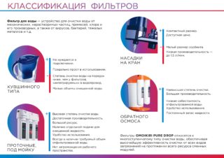 - "Zepter". Produit des unités de filtration qui peuvent être installées sous les éviers et sur les plans de travail. Ils fonctionnent selon un système en cinq étapes, dont la technologie d'osmose inverse.