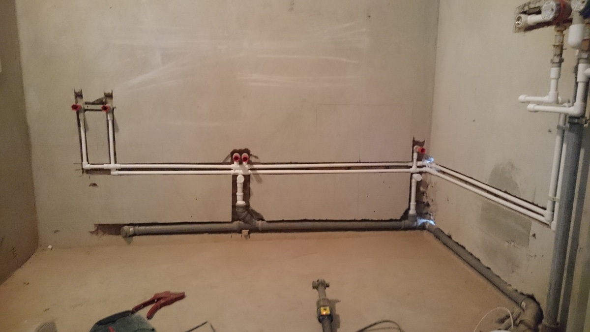 L'installation elle-même peut être démarrée de la colonne montante aux appareils sanitaires ou vice versa. Les sections de tuyaux posées dans les rainures doivent être fixées à l'intérieur des rainures. Il existe plusieurs options ici, la plus simple est de visser une vis autotaraudeuse dans la gouttière et d'y attacher le tuyau avec un fil à tricoter. Si un tuyau de petit diamètre est utilisé pour effectuer l'alimentation en eau de l'appartement, vous pouvez ignorer la fixation. Le composé de réparation maintiendra le réseau d'approvisionnement en eau bien à l'intérieur des rainures.