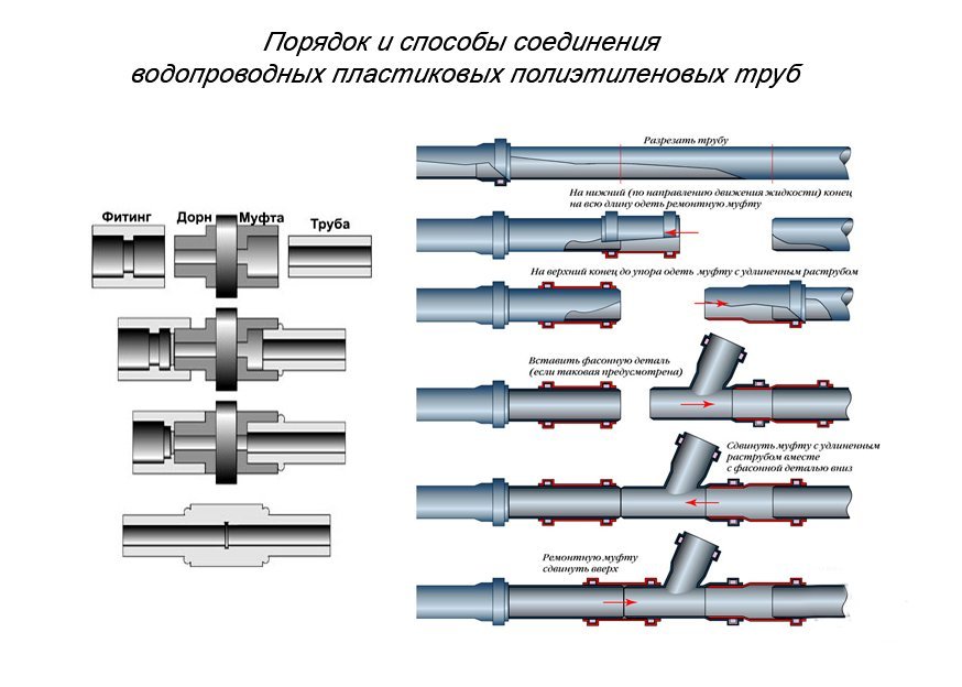 Chlorure de polyvinyle ou PVC plus résistant que le polyéthylène. Résiste à une pression jusqu'à 46 atmosphères. Il tolère bien les températures jusqu'à 90 degrés. Le matériau est chimiquement inerte. Surtout pour les structures en PVC, vous pouvez acheter des adaptateurs, des raccords et des coins et effectuer l'installation vous-même.