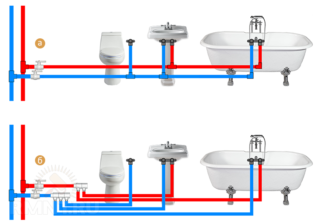 - Cohérent. Cela implique la pose de la conduite principale et de tuyaux d'une section plus petite s'étendant de celle-ci à chaque point de plomberie. Si vous ouvrez plusieurs robinets en même temps avec un tel câblage, l'eau sera fournie avec une pression plus faible.