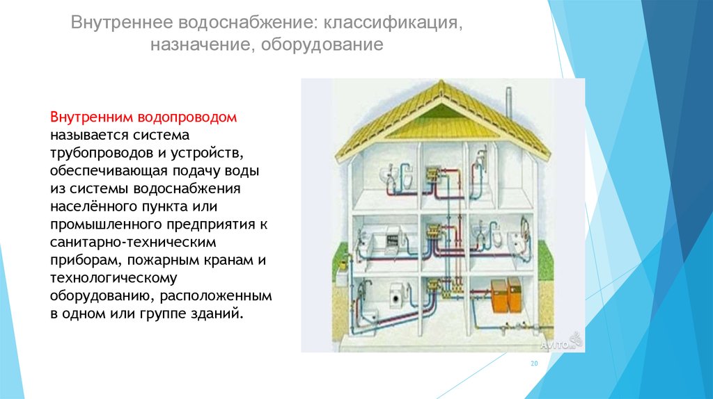 L'alimentation en eau interne se compose de la ligne principale et des dérivations qui en sortent, qui passent à l'intérieur du bâtiment et sont reliées aux points de prise d'eau. Pour le tracer, vous devez étudier attentivement les plans d'étage du bâtiment, du sous-sol ou du sous-sol technique.