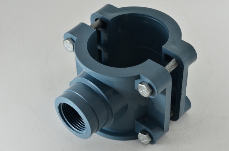 Une branche pour les tuyaux en PEHD, PVC et métal peut être réalisée à l'aide d'un dispositif appelé selle. Il s'agit d'une pince en deux parties spécialement conçue. Le raccord du manchon doit correspondre au diamètre extérieur du tuyau. La partie inférieure, ou selle, s'adapte parfaitement autour du tuyau. La partie supérieure comporte une bride ou un tuyau de dérivation pour percer le tuyau et raccorder la dérivation. Des selles en trois parties sont disponibles pour les systèmes de grand diamètre. Il n'y a pas d'inconvénients à ce type de raccords à compression, et la liste des avantages est assez longue :