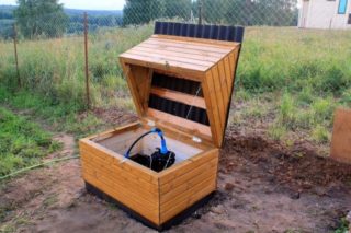 Les dimensions de l'abri doivent correspondre aux dimensions de la prise d'eau. Un petit auvent ne vous protégera pas de la pluie, de la neige et de la boue, et une « tour » volumineuse rendra l'exploitation du puits difficile.