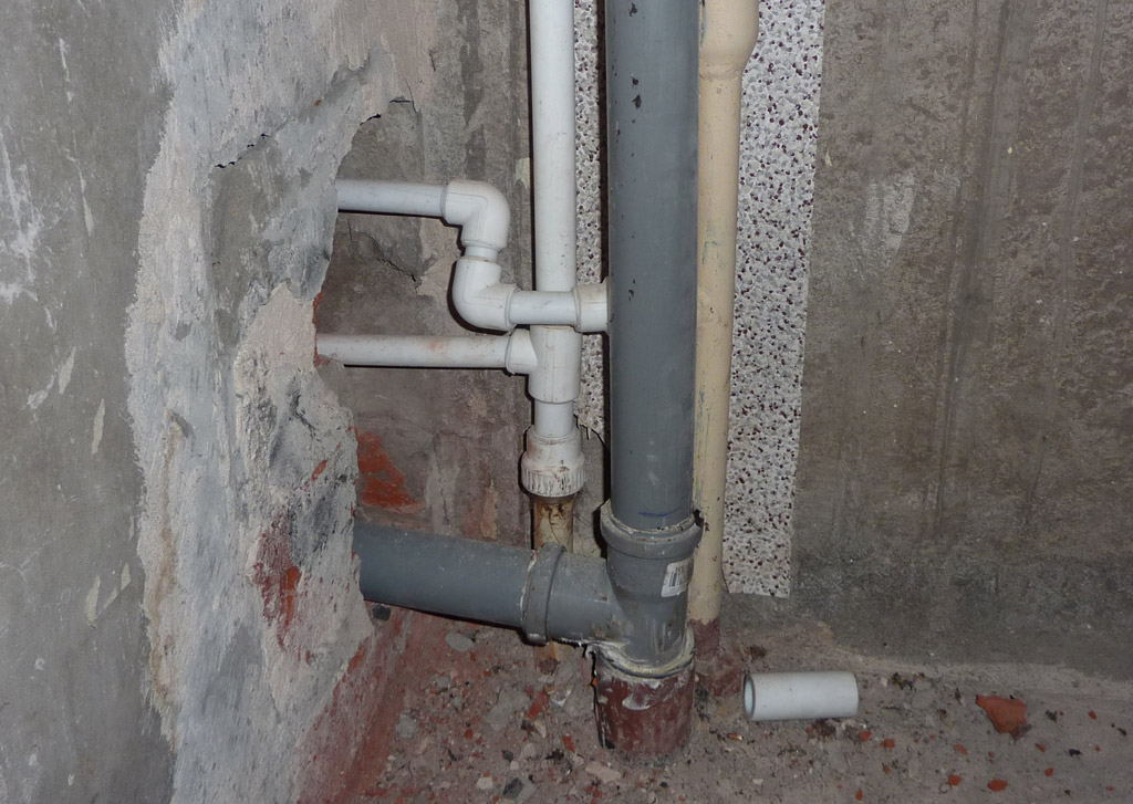 - Les nouveaux tuyaux sont descendus à travers un trou dans le sol jusqu'aux voisins et reliés au raccord. La même chose est faite d'en haut.