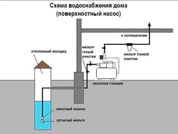- Lors de l'installation de l'autoroute, il est important d'observer la pente de la maison à la source (puits/puits). Cela garantira la libre circulation de l'eau et protégera les tuyaux de la stagnation.