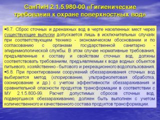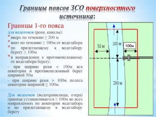 Des zones sanitaires sont calculées à toutes les étapes de la construction, ainsi que le fonctionnement des prises d'eau. Les informations sur les limites du WSS sont reflétées dans le projet avec un plan d'action pour améliorer l'état sanitaire de l'aire protégée et les règles de son utilisation.