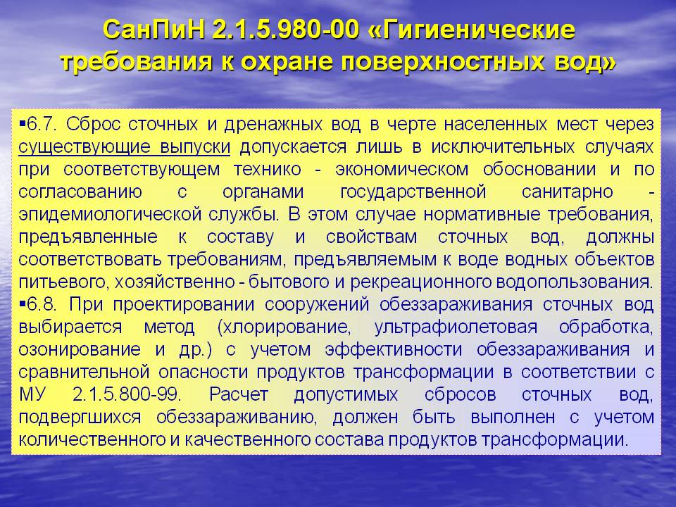 Les sources d'eau sont des objets d'importance stratégique, car la vie et la santé de la population du pays dépendent de la qualité de l'eau. La protection de la sécurité des ressources naturelles est garantie par la Constitution de la Fédération de Russie, relève de la compétence de l'État et est assurée par les règles et règlements sanitaires du SanPiN de la zone de protection sanitaire des sources d'approvisionnement en eau et des conduites d'eau potable. . La Zone de Protection Sanitaire (ZPS) est un site soumis à un régime particulier d'occupation des sols. Il est libéré autour des lieux de prise d'eau et de transport pour créer une barrière contre la pollution industrielle, les substances toxiques, les agents pathogènes.